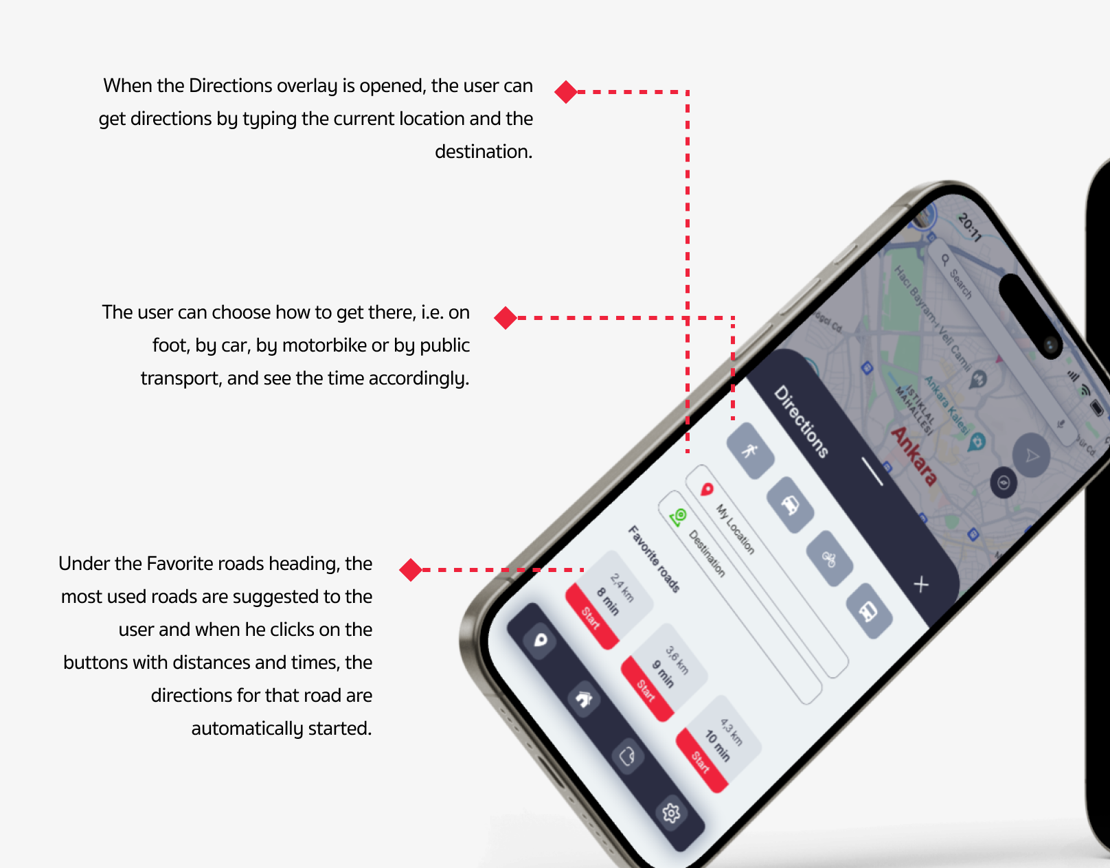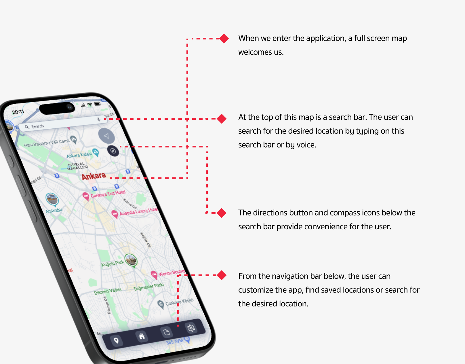 Features such as location tracking and route planning have become powerful tools that directly affect the user experience, especially in mobile applications. Map-based interfaces are actively used in many industries for both urban navigation and user safety. In this direction, I started working on this design that can present map experiences in a simple but functional way.